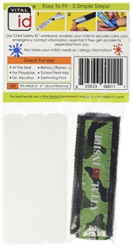 Product DescriptionDescription: A Child I.D Safety wristband with a fresh approach, it is inconspicuous but holds the vital id children may need when encountering either a medical emergency or a separation form a parent or guardian.0