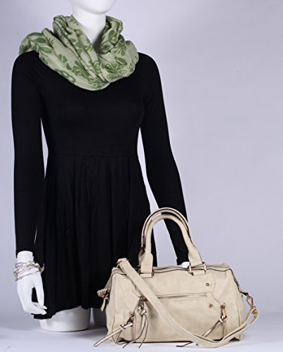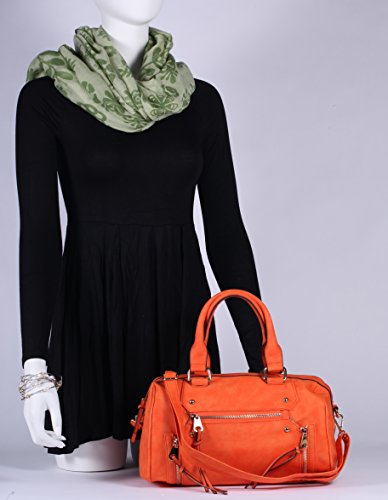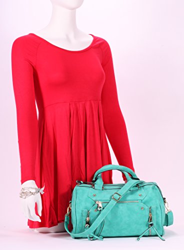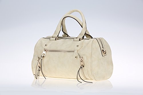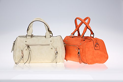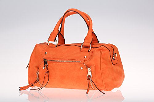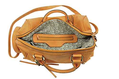 -. Feature : Stylish satchel with zipper design. Made of faux leather. 2 Top handles: 7" drop. / Handbag has many compartments to hold items. / Zipper closure. 2 Exterior pockets, front and back. / Spacious interior, 2 slip pockets and 1 zippered pocket. / Measures 12.5 x 8" x 4.5";Optional adjustable shoulder strap.