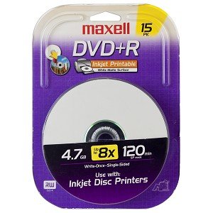 Studio : Maxell Publisher : Maxell Binding : Electronics Product Description Burn movies, music, photos and more at fast 8x speeds with this Maxell DVD R media. Each disc of this 15-pack provides 4.7 GB of data storage or 120-minutes of audio. Each disc features a inkjet printable surface for customizing your discs. 0