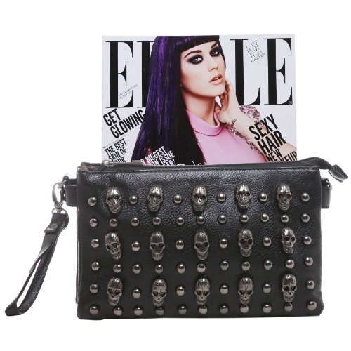 -. Title : MG Collection Quina Skulls Mini Studded Shoulder Cross-Body Handbag