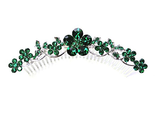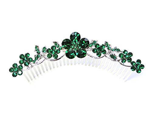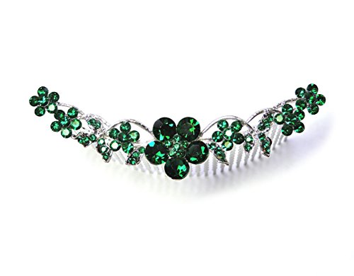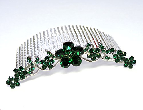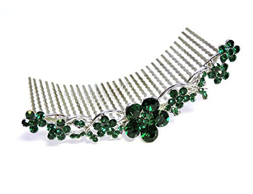 Faship Emerald Color Green Hair Comb Crystal Floral
