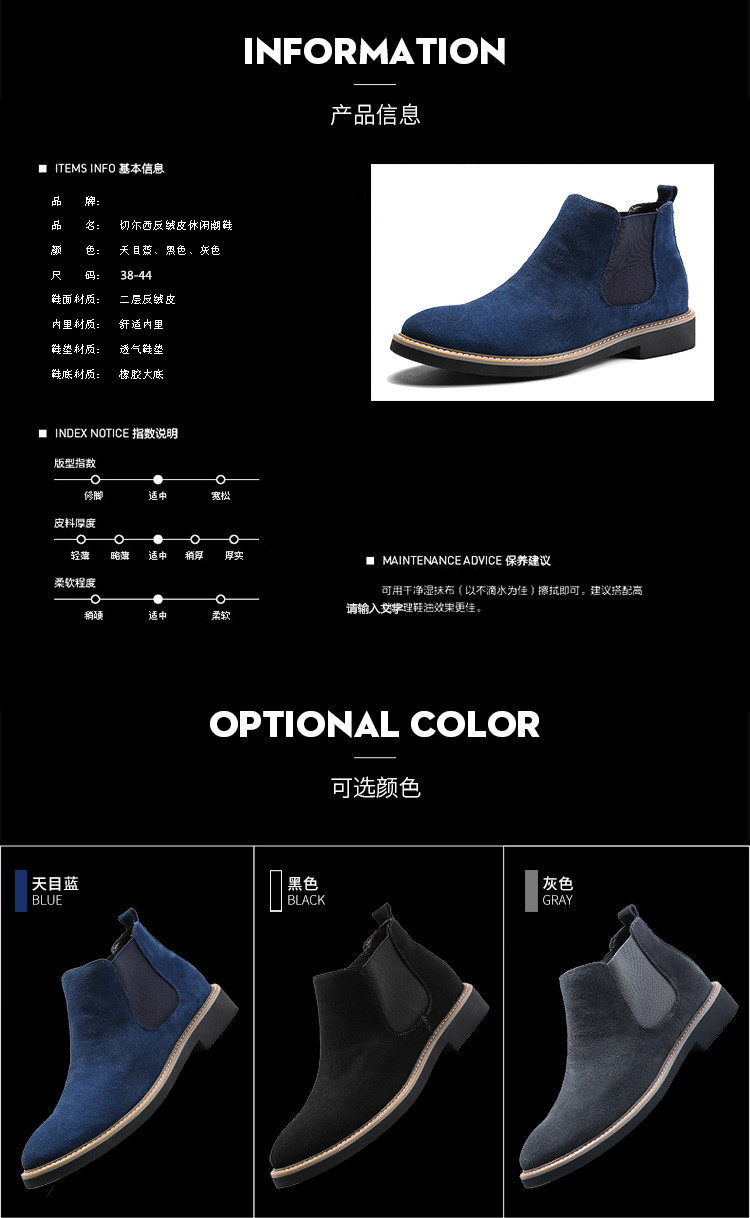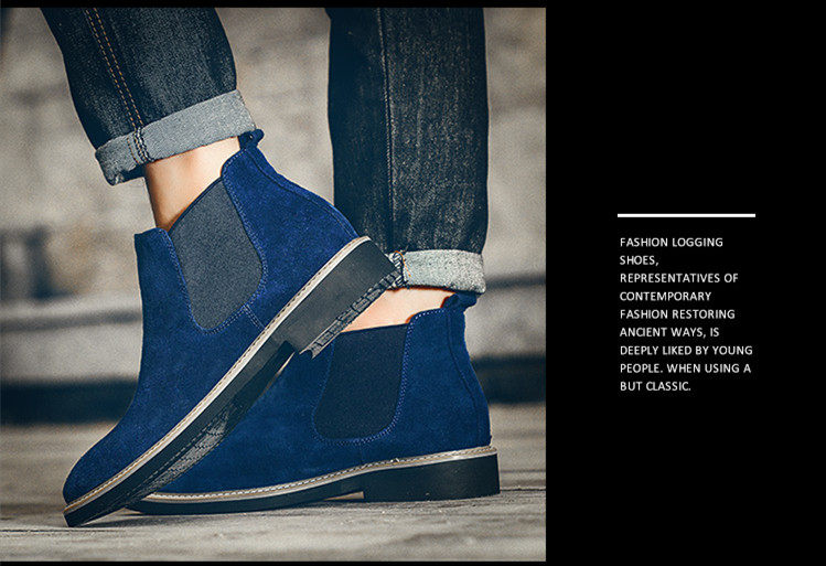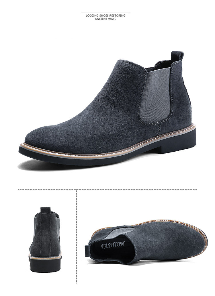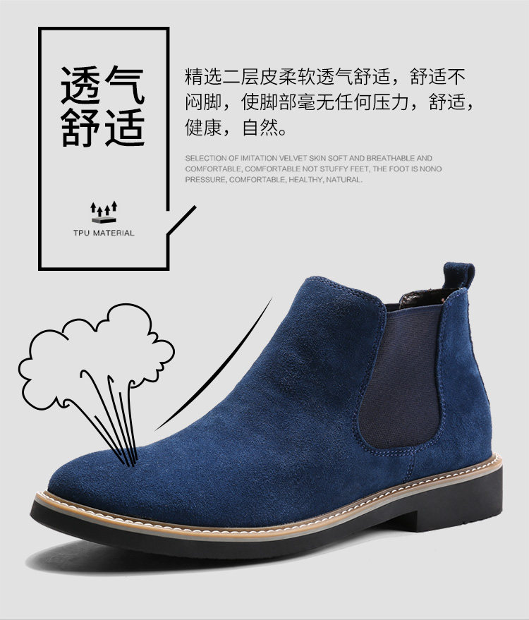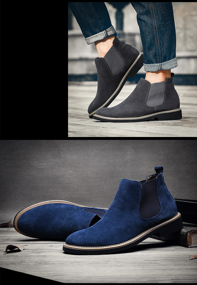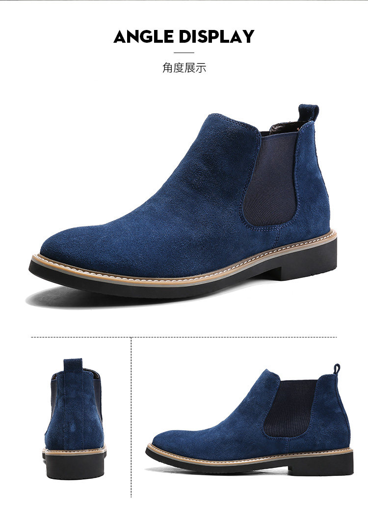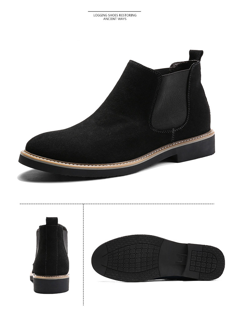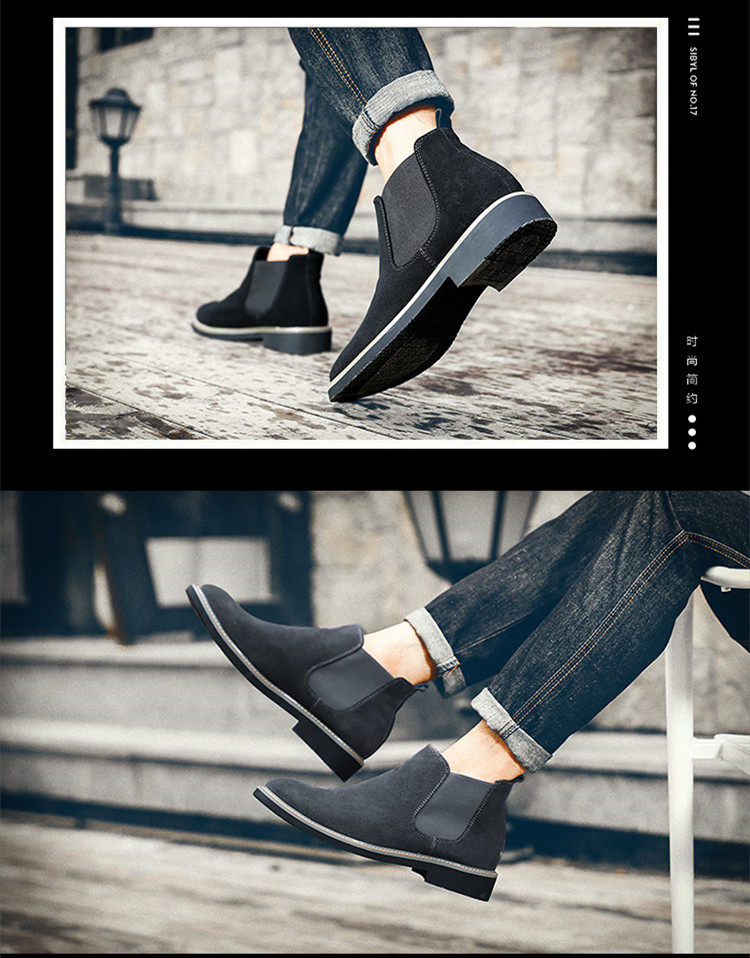 短靴男英伦尖头反绒磨砂皮马丁靴松紧套脚切尔西靴子男休闲潮靴男