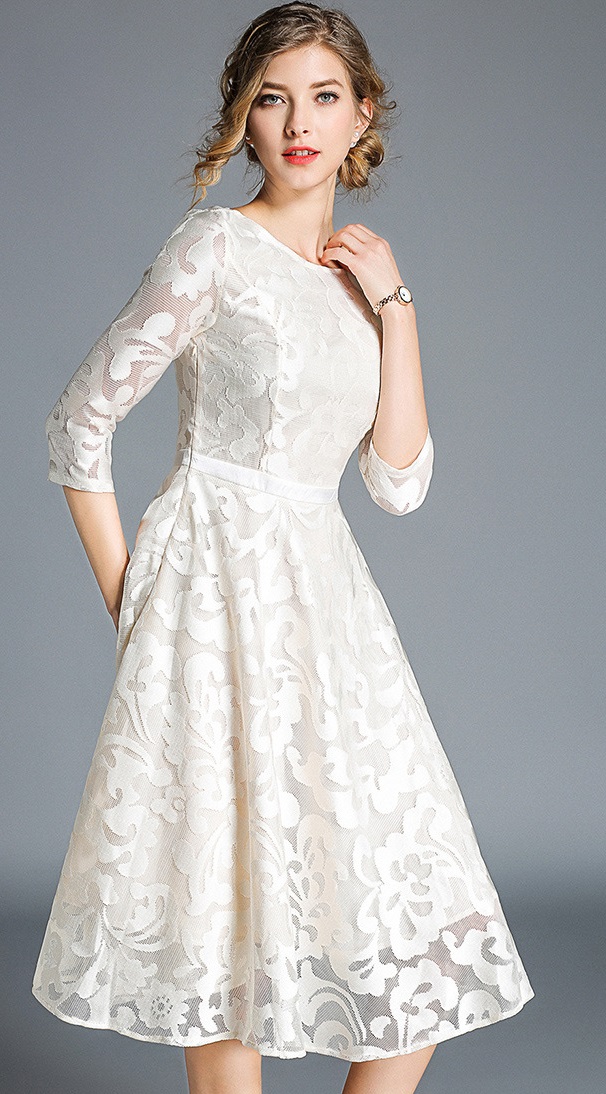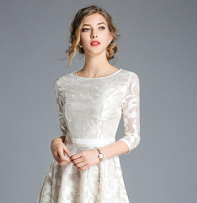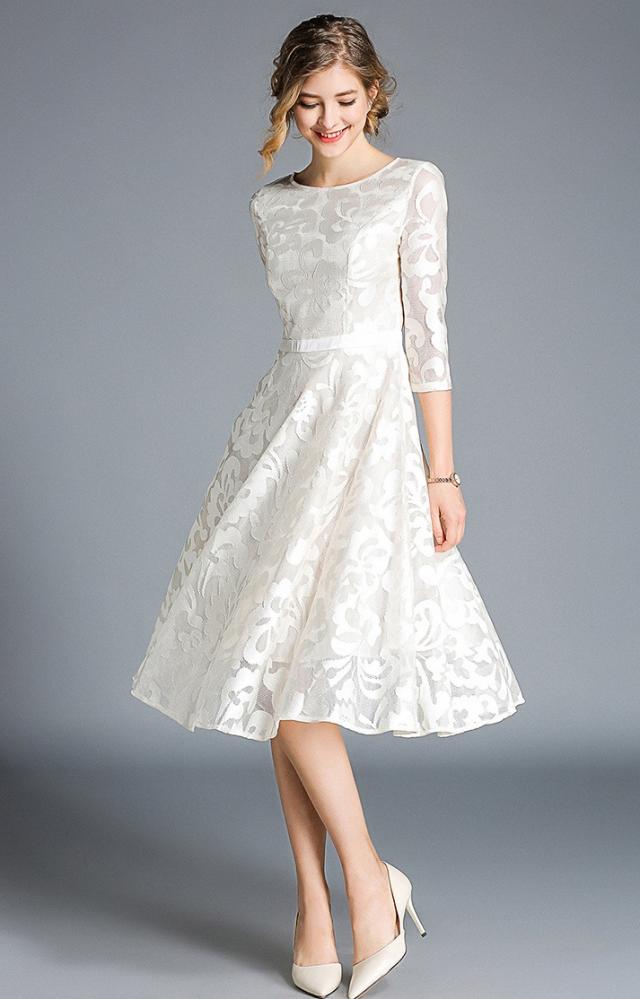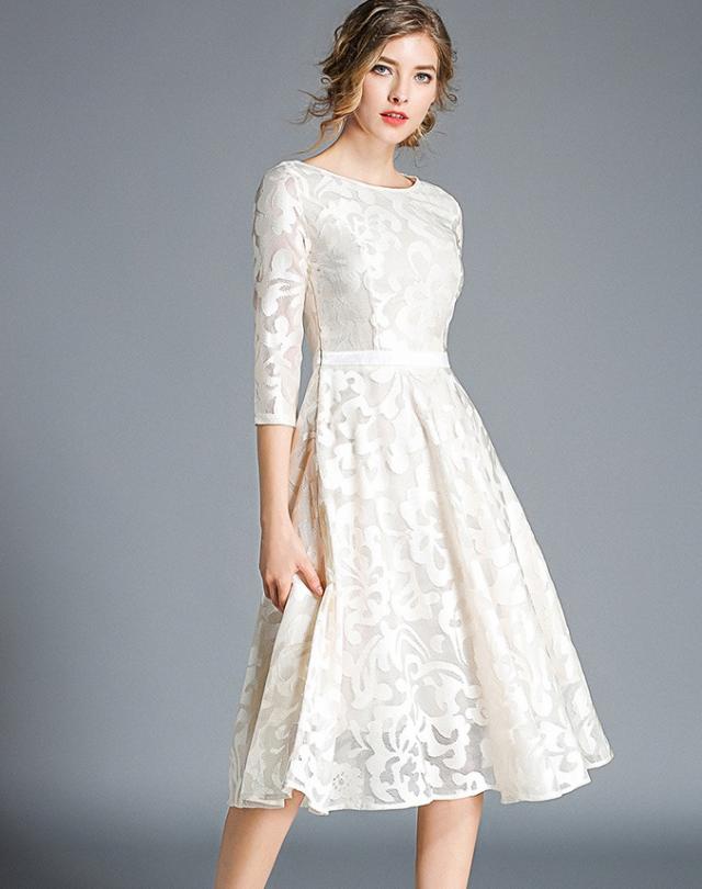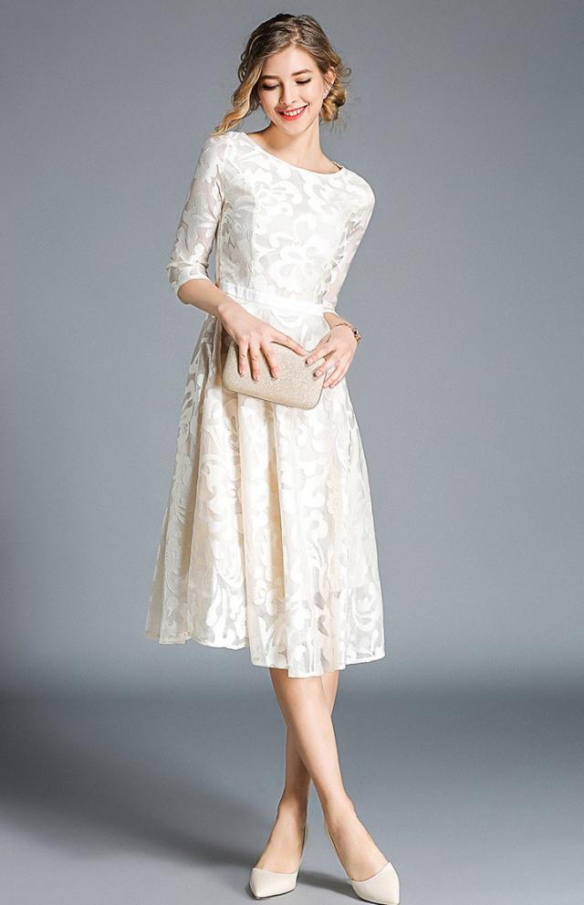 #レース#華やか#結婚式#二次会#パーティー#ステージ#披露宴#膝下丈#七分袖