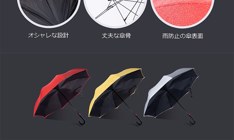 長傘革新的なデザイン:クリエイティブ車のリバース傘、ユニークな逆折設計を採用することにより、濡れた面が閉じると内側に。濡れた状態で閉じても衣服などが濡れるのを防ぎます。電車の中でもまわりに迷惑をかけることがありません。
