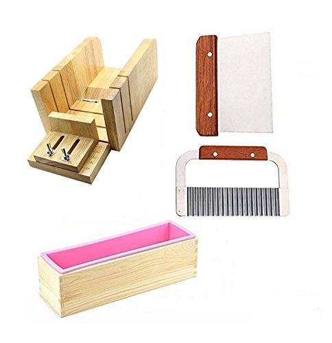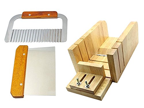 6MILES 2Pcs Stainless Steel Wavy and 1Pcs Straight Soap Mold Loaf Garnish Cake Cutter Cutting Tool Home Kitchen Graters Peelers Slicers Knife Set(Adjustable)+ Wood Box