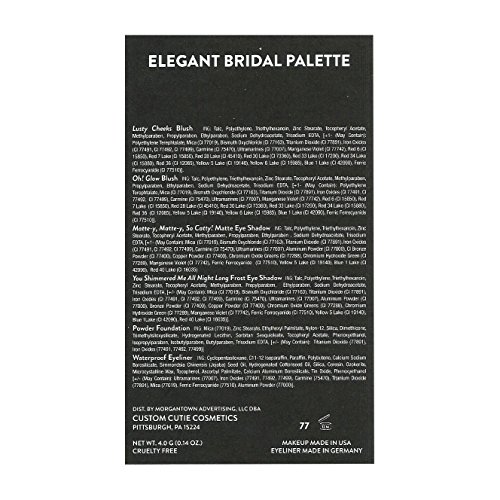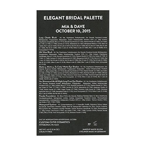 -. Feature : Eye Shadow - 1 Matte and 2 Frost Eye Shadows-Highly Pigmented, Rich Texture, Can be Worn Wet or Dry - Bronze Smokey Eye, Black Eyeliner - Waterproof with Antioxidants / Powder Foundation - Can be worn wet or dry, Contains Vitamin E, Blush - 1 Exquisite Shimmery Blush for a Glow and 1 Lightweight, Smooth Blush, Beautiful platinum-colored palette with mirror / Delivery for Custom Cosmetics is 3 weeks. (21 days) / Please accurately spell your customized label request. Labels are Printed exactly as we receive them. Thank You! Item is Non-Returnable because it is customized. / Cruelty Free Cosmetic, Made in the USA