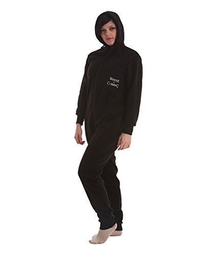 Binding : Apparel Product Description For Game of Thrones fans. This Night Watch adult pajama suit in soft polar fleece will keep you warm on The Wall on cold nights. Its hooded for extra warmth. There are also large front pockets for your hands. Our funzee UNISEX Sizing is comfy for men and women and is best based on the HEIGHT of the wearer as this determines the length of the garment: ******Petite (XS): 5 ft 1 - Small: 5 ft 4 - Medium: 5 ft 7 - Medium Generous: 5 ft 7 but with fuller figure (Plus Size) - Large: 5 ft 10 - X Large: 6 ft 1 - XXL: 6ft 4 ******Part of the funzee range - only available online. Many other funzee styles and colors available including "Game of Thrones" footed. Stay classy with funzee. 0