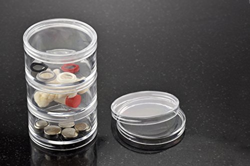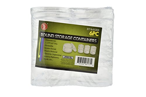 Studio : Sona Enterprises Publisher : Sona Enterprises Binding : Tools Home Improvement Product Description SE is proud to present our 6 Stackable Plastic Storage Containers with Screw On Lids. This is a versatile set that can be used for many things such as storing and displaying jewelry, gems, beads, minerals, rocks, coins, stickers, stamps, nuts, bolts, tools, buttons, craft supplies, sewing supplies, and so much more. The containers can be used separately or stacked on top of one another. Stack, store, organize, and take with you wherever you need! Features of our 5 Stackable Plastic Storage Containers with Screw On Lids include: (1) 5 round plastic storage containers (2) Diameter: 1-3/4" (3) Height: 1" (4) The lids for the storage containers are screw on and stackable (5) Clear plastic containers so you can easily see everything inside (6) Containers can be used independently for storage or kept stacked together Important: Avoid getting counterfeit items. Genuine SE products come with our SE logo on the packaging. SE is committed to providing the customer with the best source for value possible on the market. You will enjoy the quality, function and usefulness our 6 Stackable Plastic Storage Containers with Screw On Lids has to offer. SE is a registered trademark protected by US Trademark Law. 0