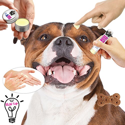 Many dogs have a tendency toward a dry, crusty nose condition, frequently called nasal hyperkeratosis. While any dog can have this condition some breeds have even more of a predisposition toward dry noses; French Bulldogs, Boxers, Pugs, Bulldogs, most Bully type and Mastiff breeds and their mixes. NOSE BUTTER was developed specifically for this condition. NOSE BUTTER For Dry or Crusty Dog Noses. All natural, rich moisturizers soften and smooth your dog's dry, crusty, cracked nose. NOSE BUTTER is individually handcrafted in far northern Minnesota (yes, it is science fiction cold in the winter) using all natural and organic good stuff: shea butter, olive oil, castor oil, avocado oil, almond oil, coconut oil, beeswax, cocoa seed butter, a dash of essential oils and love. NOSE BUTTER USAGE: DAB a bit onto your dog's nose 1-3x a day for 2-3 days (until nose improves) and then as needed for maintenance (usually1-2x a week). DISTRACT with a treat (keeps them from licking NOSE BUTTER off while it moisturizes).DONE! Complete directions, tips, hints and Dog Nose info is available.Feature