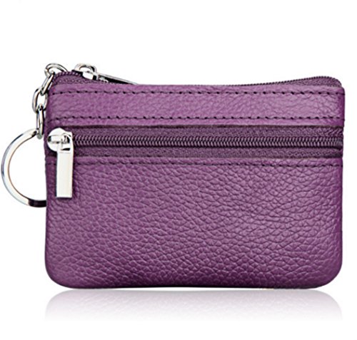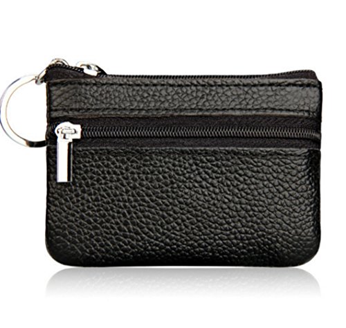 | YaJaMa Womens Genuine Leather Zip Wallet Mini Coin Purse with Key Ring |