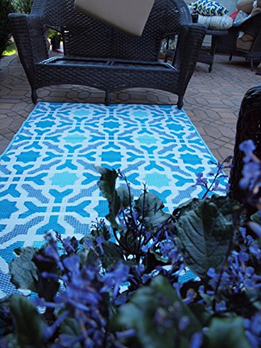 -. Brand : Fab Habitat -. Feature : Woven from straws made up of recycled plastic / Washable, just shake or hose off for easy cleaning, Reversible, change the look of your decor / Suitable for indoor and outdoor uses; for outdoor use anchor with furniture or outdoor Velcro / Lightweight - Portable for use in picnics and camping trips. Comes with Eco-friendly jute bag / *Actual colors may vary from the image(s) shown due to manufacturing limitations. -. Label : Fab Habitat -. Manufacturer : Fab Habitat -. ProductGroup : Furniture -. ProductTypeName : HOME_FURNITURE_AND_DECOR -. Publisher : Fab Habitat -. Studio : Fab Habitat -. Title : Fab Habitat Indoor / Outdoor Seville - Multicolor - Blue