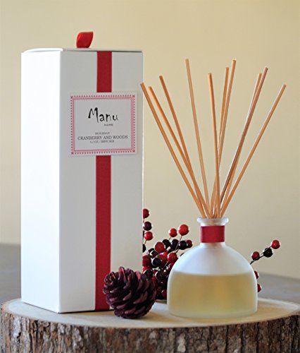 Holiday Cranberry & Woods Reed Diffuser Set~ Made with Aromatherapy Oils in a Beautiful reusable frosted bottle~ 6.5 oz! Made in the USA!