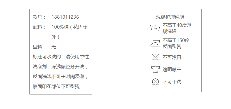100%棉(花边除外)
