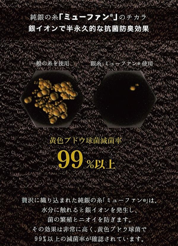 | 純銀の糸「ミューファン(R)」を織り込んだタオルです。 |