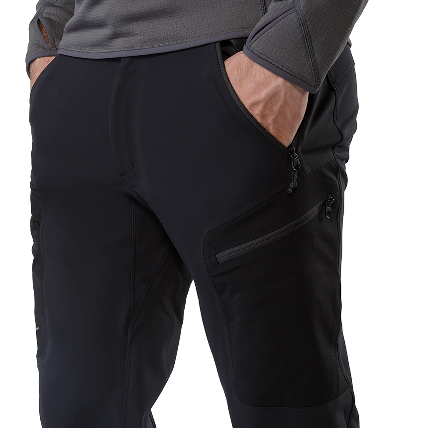 에센셜 카테고리 중 가장 따뜻한 소프트쉘 팬츠로 다양한 아웃도어 활동이 가능하다. 신축성이 뛰어난 원단과 가랑이 거셋처리로 활동성을 높였고 원단의 내구성과 방풍성이 뛰어나다.