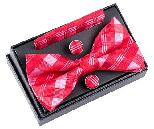 -. Title : Tartan Check Patterns Woven Pre-tied Bow Tie (5") w/ Pocket Square & Cufflinks Gift Set