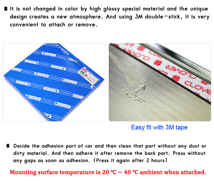 To check the mounting area according to the vehicle with this product first and then release the back of 3M tape paper (double-sided tape, a lable) is removed