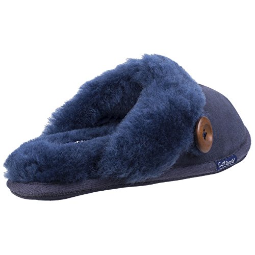 Product DescriptionCotswold mule slippers. This Lechlade comfortable slipper has a luxurious double faced sheepskin and soft suede upper. Gentle rubber grips for ultimate comfort. Bold natural toned button detail.0