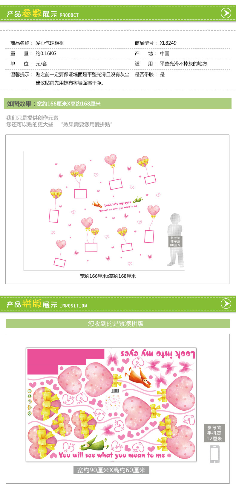 爱心气球相框墙贴客厅背景墙卧室床头装饰照片墙贴纸贴画墙纸自粘