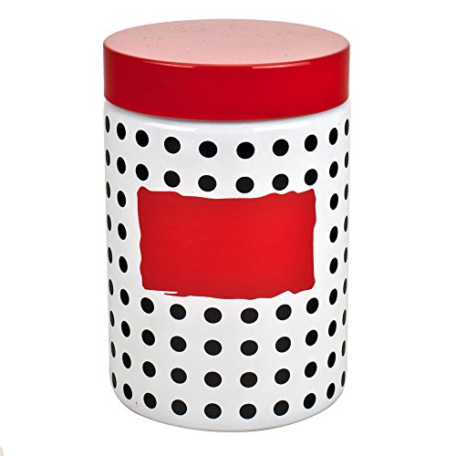 Housewares International 34145 Blue Harbor Glass Jar Polka Dot with Red Lid, 43.9 oz, White
