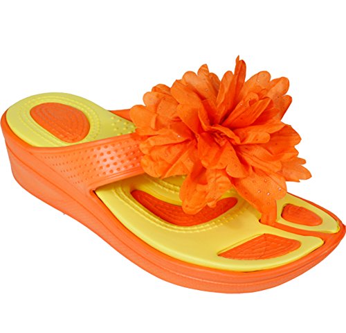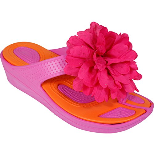 Binding : Apparel Product Description Release your inner passion with these simple but bright sandals meant for anyone to enjoy! Each sandal is adorned with a large colorful flower covered with small dots of glitter to accentuate the rest of the color scheme. The soles of the sandals are dotted with small bumps to provide a non-slip surface for a safe walk. And the perfect amount of heel is what clinches the deal: just enough to stand over the crowd. What better way to start the warm weather than with a pair of these sandals? 0