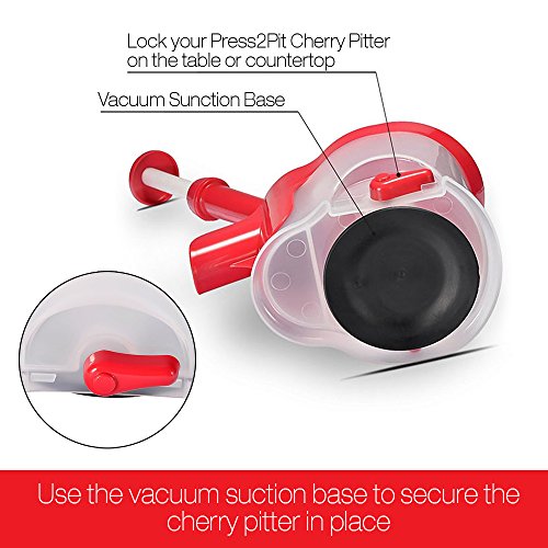- Feature : Imagine a family gathering at your home and both kids and adults going through pounds and pounds of cherries just pitting them and popping into their mouths. Make your Press2Pit Cherry Pitter an absolute hit in the kitchen.Impress your family and friends with this device and make delicious recipes that call for pitted cherries. / Let your kids enjoy delicious home-made fresh cherry desert without worrying about them biting into a pit or chewing around the pits and then making sure they spit them out. Use the Press2Pit cherry pitter to eject out pristine looking cherries within a few minutes. / EFFORTLESS PITTING: The smoothest piston handle requires least amount of pressure. The specially designed ergonomic handle and smooth spring action results in bruise-free pitted cherries every single time. Specially designed for people with any hand/muscle concerns. / SAVES YOU MONEY AND TIME: Fast, fool-proof, efficient cherry pitting experience without spending hundred dollars on a professional grade or commercial stoner. Cherries stay whole and will not crush causing no wasted fruit. / EASY TO CLEAN: Just wash all the parts with running water