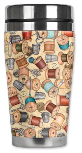 Mugzie Sewing Thread Travel Mug with Insulated Wetsuit Cover, 16 oz, Black