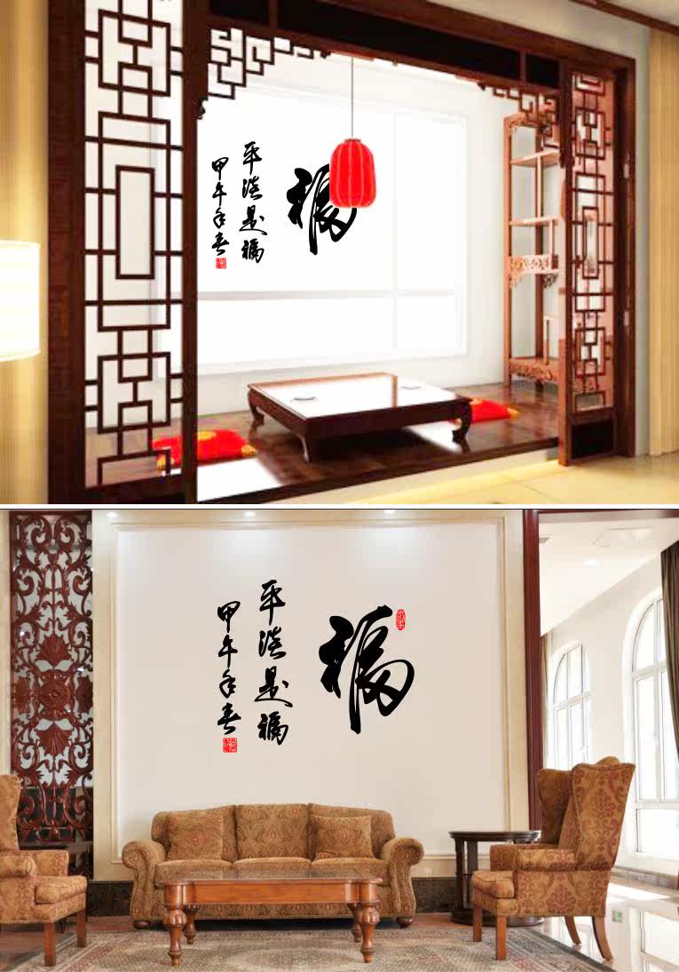 福字书法墙贴 古色古香书房字画 卧室沙发茶室装饰墙贴2293