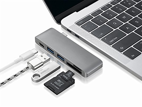 -. Feature : Multi-Port HUB - 5 in 1 USB C adapter contains one SD Card Reader, one Micro SD (TF) Card Reader, one Type-C charging port and two USB 3.0 ports, providing high speed data transfer rate up to 5 Gbp/s / Easy to Use - PLUG & PLAY, easily installation, no need external software drivers or additional power source. supposed to be used with portable devices such as wire keyboard, USB flash drive, 2.5mm external disk etc. (When using high power consumption devices, you may need to connect them to external power, such as 3.5mm external disk, DVD-driver, P.R.Inter, etc.) / Extensive Application - Perfectly compatible with popular USB-C systems such as 2017 MacBook /MacBook Pro, Late 2016 MacBook Pro 13" & 15", Google Chromebook 2016, Huawei Matebook 2016, HP and other Type C devices. / Ultra Portable - Sleek aluminum-alloy finish perfectly complements the new MacBook and other premium laptops. Slimline design and lightweight aluminum casing provide greater portability and convenience. Take your adapter anywhere, hassle-free. / RISK-FREE MONEY BACK GUARANTEE - 12 months warranty & 30 days satisfaction or return guarantee. 24h email support. If you are not completely satisfied, simply contact us and we will give you a full refund!