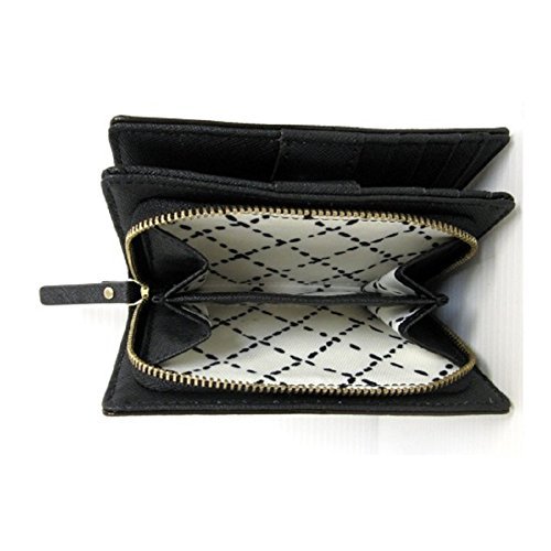 -. Brand : kate spade new york -. Color : black -. Department : womens -. EAN : 0098689767833 -. Feature : Black saffiano leather / snap and zipper closure, slip pocket on back, inside fabric lining. / Inside: 4 card slots, 1 ID window, 4 additional multifunction slots. / Kate Spade engraved gold plate on front / Measures approximately 5" x 3.75" x 1.5" -. Model : WLRU1931 -. MPN : WLRU1931 -. PartNumber : WLRU1931 -. ProductGroup : Shoes -. ProductTypeName : HANDBAG -. Size : small -. Title : Kate Spade Cara Newbury Lane Leather Clutch Wallet Black -. UPC : 098689767833 Saffiano Leather Snap and zipper closure; Slip pocket on back Interior with 4 card slots, 4 multifunction slots, clear ID slot and and full length bill compartment Zip around portion with 2 accordion style openings Measures approximately 5" (L) x 4" (H) x 1.25" (W)
