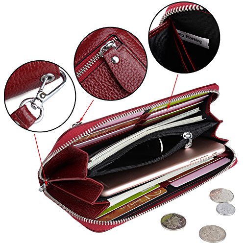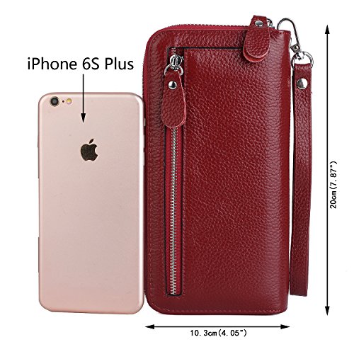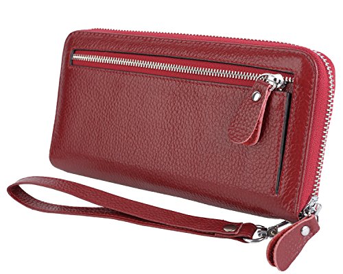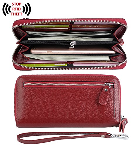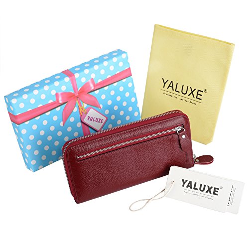 YALUXE Women's Leather RFID Security Zipper Wallet with Wristlet Strap for Card Passport Phone