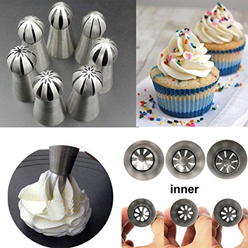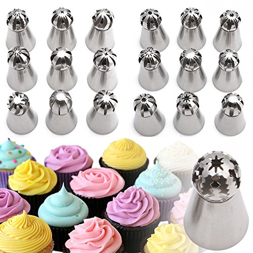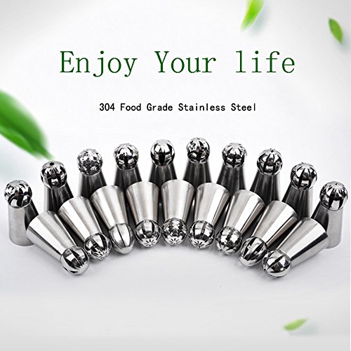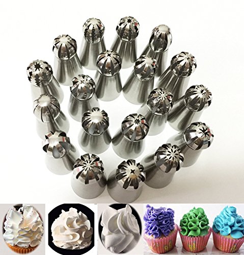 Russian Icing Piping Nozzles Tips Set by AIQI, Sphere Ball Russian Tips Stainless Steel, Pastry Cake Fondant Cupcake Buttercream DIY Decor Baking Tool (19)