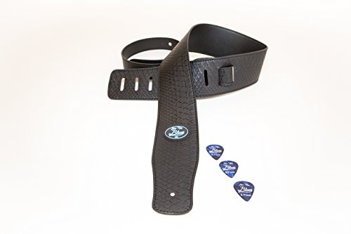 -. Brand : Blue Note Blues -. Color : Black blue -. EAN : 0646054996571 -. Feature : Mr. Snakeskin-Exclusive Blue Note Blues design / SUPPLE & DURABLE synthetic leather guitar strap 2.5" wide. / ADJUSTABLE 41"-57". Provides easy custom fit. Sits nicely on shoulder. / COMFORTABLE & STYLISH- Feels good, lightweight material. / INCLUDES 3 Celluloid Blue Note Blues 71mm PICKS -. Label : Blue Note Blues -. Manufacturer : Blue Note Blues -. Model : MUS270266 -. PackageQuantity : 1 -. ProductGroup : Musical Instruments -. ProductTypeName : INSTRUMENT_PARTS_AND_ACCESSORIES -. Publisher : Blue Note Blues -. Studio : Blue Note Blues -. Title : Synthetic Leather Guitar Strap for Acoustic Guitar, Electric Guitar, Bass Guitar. Mr. Snakeskin Guitar Strap from Blue Note Blues -. UPC : 646054996571