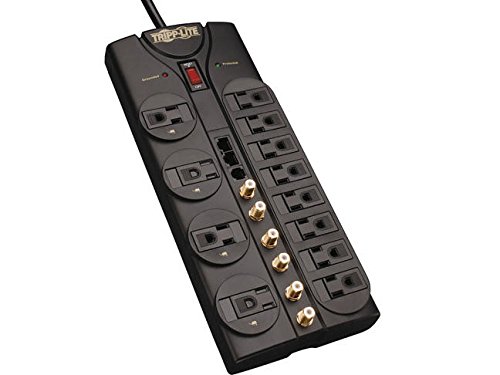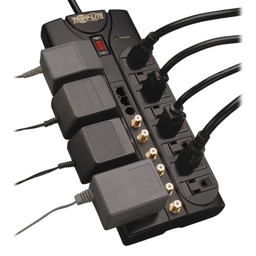 Tripp Lite 12 Outlet Audio/Video Surge Protector Tel/Modem/Coax/Ethernet 10ft Cord Right Angle Plug (HT1210SAT3)