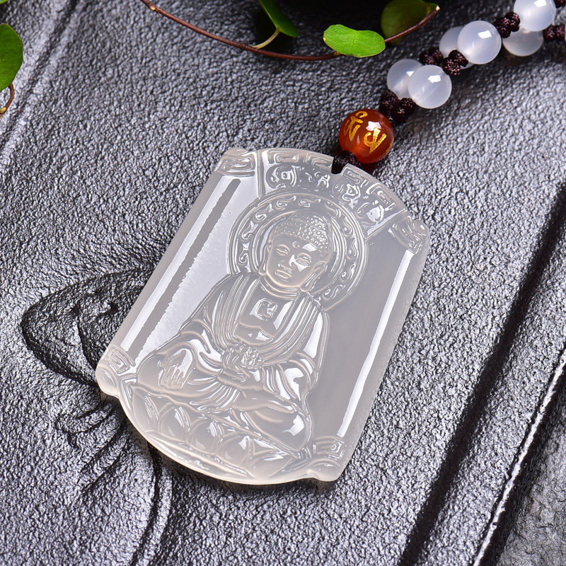 开光白玉髓生肖守护神阿弥陀佛属狗属猪本命佛吊坠平安玉坠项链