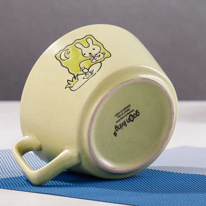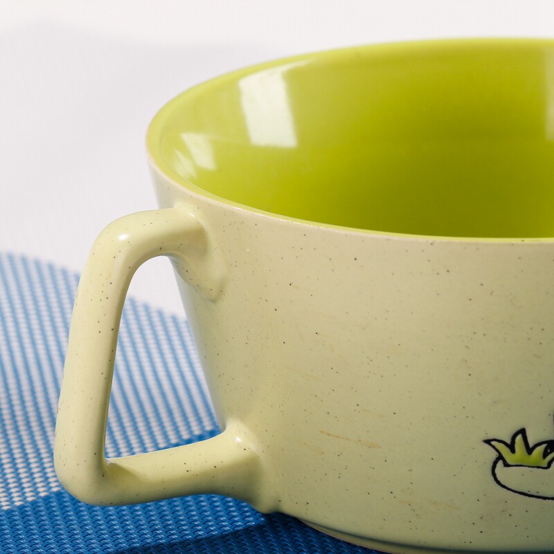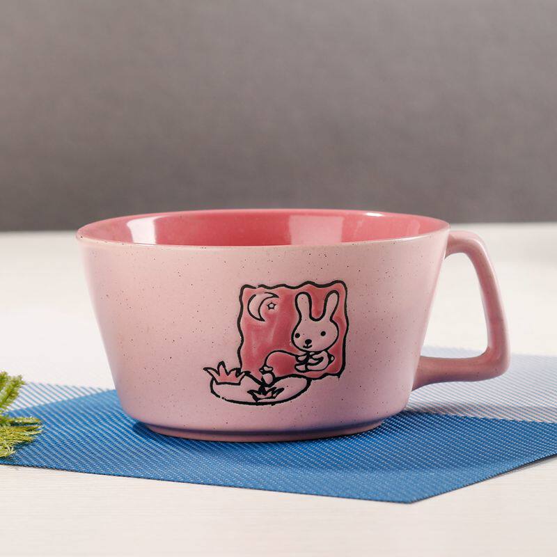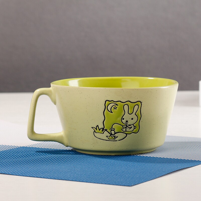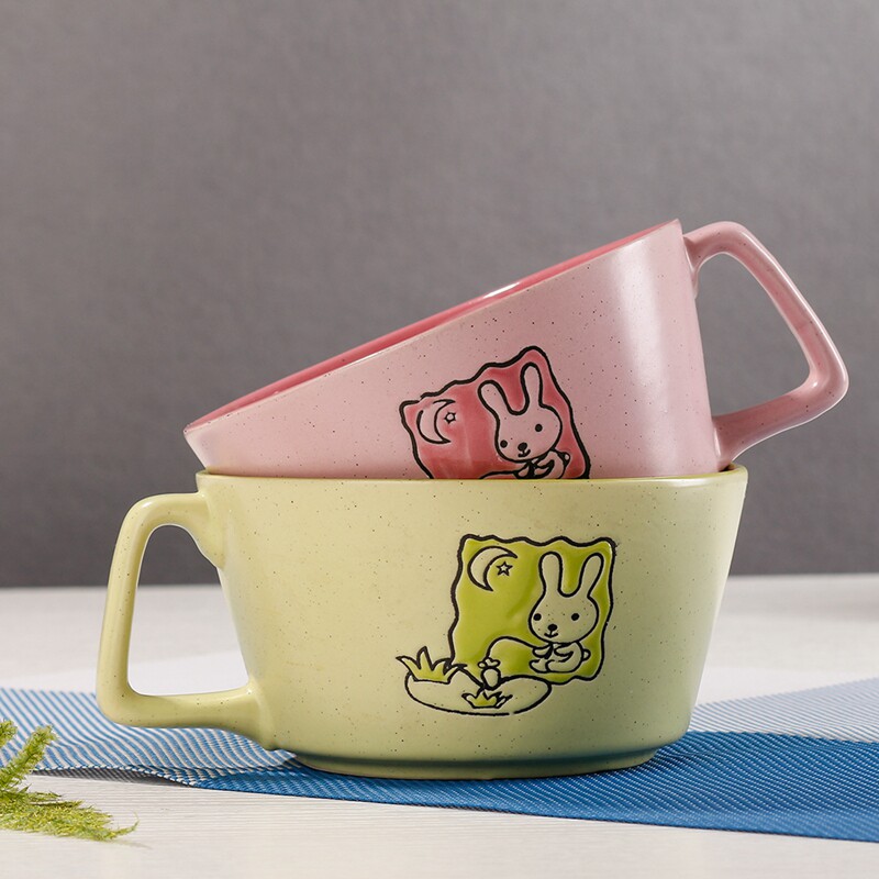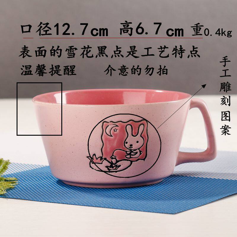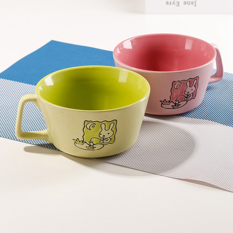 卡通兔子雕刻个性带手把陶瓷碗 可爱甜品碗 沙拉碗 成人动物饭碗