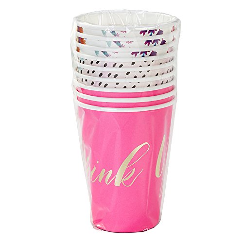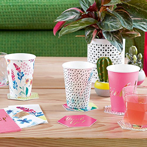 Talking Tables Fluorescent Floral Large Paper Cups for a BBQ, Luau, or Summer Party, Multicolor (12 Pack)