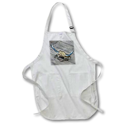 3dRose apr_63150_2 Blue Crab Marine, Creature, Animal, Animals, Wildlife, Ocean Medium Length Apron with Pouch Pockets, 22 by 24-Inch