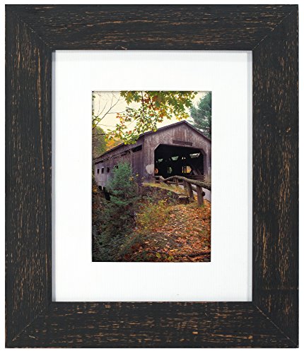 Malden International Designs Rustic Fashion Manhattan Rough Wood White Mat Frame, 5x7/8x10, Black