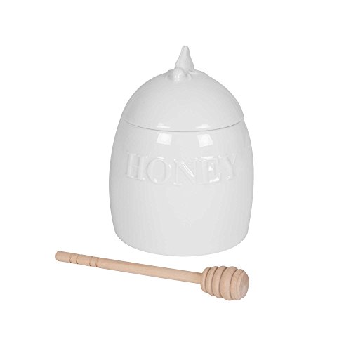 Studio : Generic Publisher : Generic Product Description Presentation is everything. In pristine white porcelain, the Everyday White Honey Pot with Dipper is an adorable and practical accent when serving tea. The white porcelain pot is embossed with the word "Honey", and includes a wooden dipper. 0