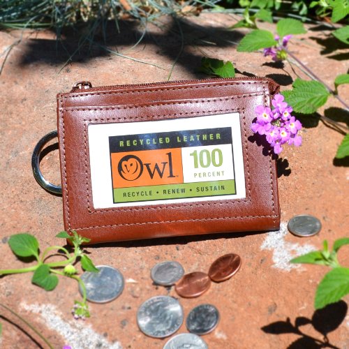 The OWL Recycled Zip ID pouch is made from 100% post-industrial cowhide leather shavings that are bonded together with natural rubber from the Rubber Tree! Even the lining is recycled as it is woven from yesterday's plastic bottles and food containers that would otherwise end up in landfills. The cowhide finished leather comes from Spain, where both the leather and the tannery are held to strict European environmental standards making it a wise, eco-conscious choice you can rely on. A compact wallet that stores lose change safely and carries essential cards easily. This convenient Ziptop Coin ID holder is perfect for on-the-go travel and a must-have for college students, military personnel, office workers, travelers and shoppers. OWL Recycled is a registered trademark of Vallavista Corporation.