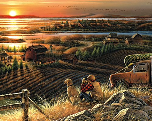 -. Feature : The sun is coming up, geese fly overhead and farms are beginning to stir as a hunter surveys the landscape through binoculars. / Artist Terry Redlin is an American artist popular for painting outdoor themes and wildlife, often pictured in twilight / Every White Mountain Puzzle is proudly manufactured in America with a 100% customer satisfaction guarantee / All our puzzles contain unique interlocking pieces that are made of sturdy blue chipboard on recycled paper / 1000 piece puzzles measure 24"x30" - larger pieces for easy handling