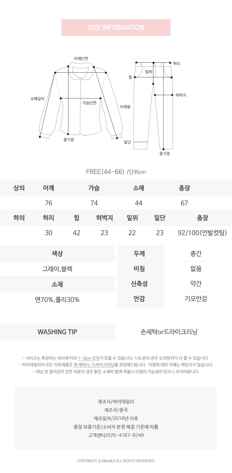 첫 세탁시 손세탁, 단독세탁 및 드라이크리닝을 권장합니다.