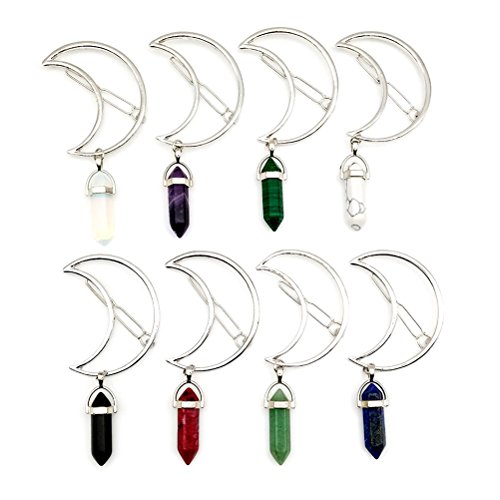 UBOOMS 8 Pcs Women Alloy Moon Hair Clip Natural Stone Pendant Charms Clamp Hairpin Barrettes Bobby Pins Hair Ornament Decoration Accessory