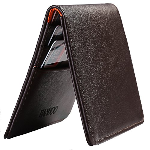 -. Title : Mens Slim Wallet Cowhide Leather Small Bifold Front Pocket Wallets ID Window