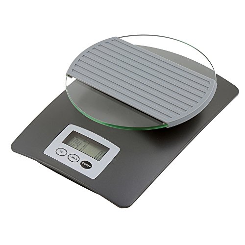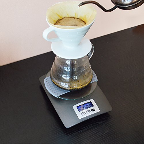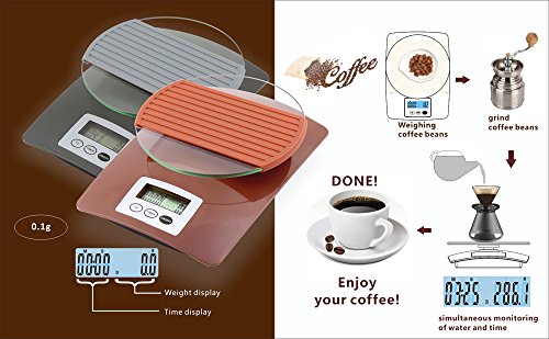 Ivykin Multi-function Glass Tray Digital Food Kitchen Scale Timer for Drip / Pour Over Coffee / Cooking / Baking With Rubber Mat (grey)