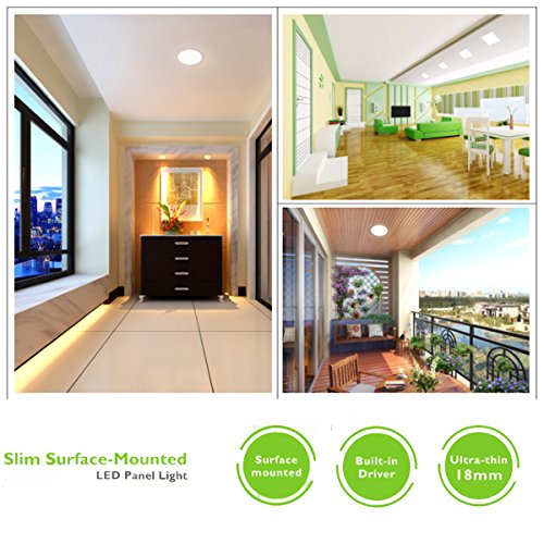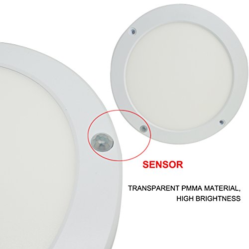 LED Panel Light PIR Motion Sensor Body Detector Ceiling 15W 4000K Φ8.66 Inch Surface Mounted Lights Round Flush Mount Light Dimmable For Corridor Stairs Depot Bathroom Toilet Children Room (White)