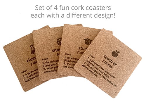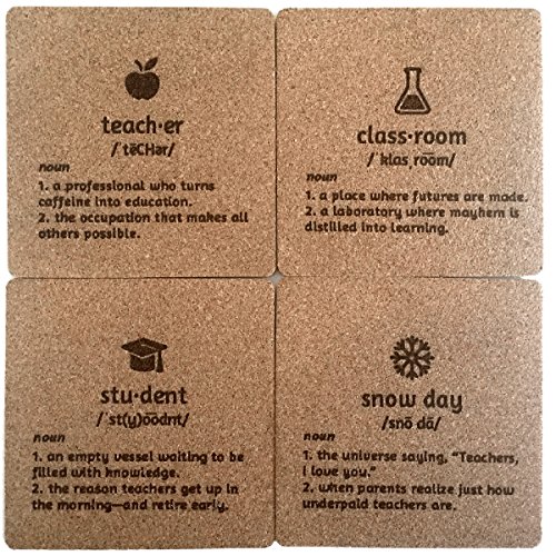 Funny Teacher Appreciation Coaster Gift Set; Definitions: Teacher, Student, Classroom, Snow Day. Teacher Humor, Gift for Teachers
