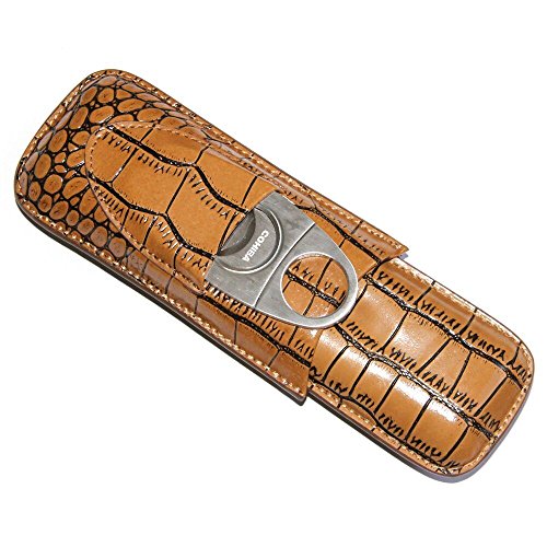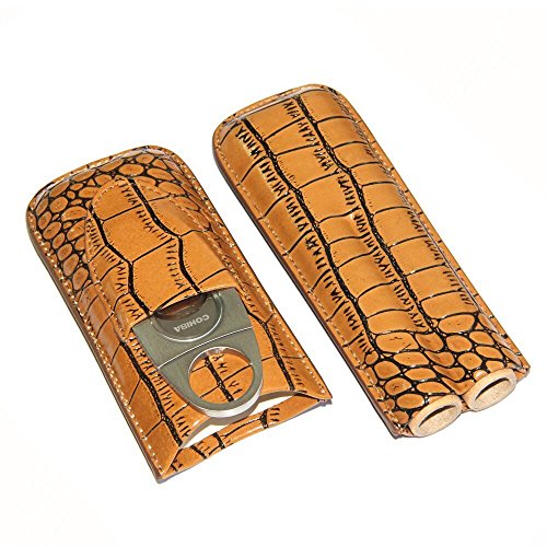 Genuine Leather Mini Cigar Case Brown Traveling Cigar Box with 2 Tube