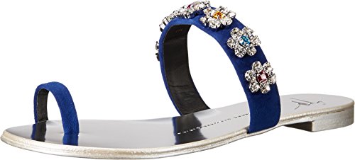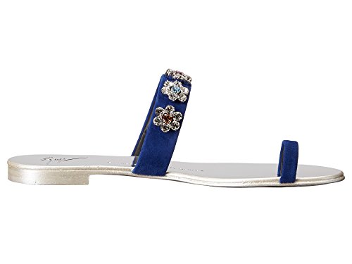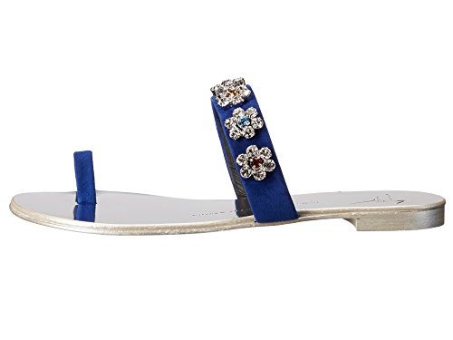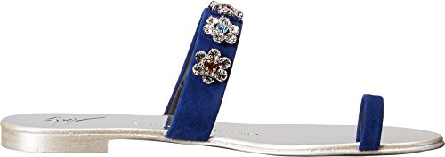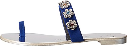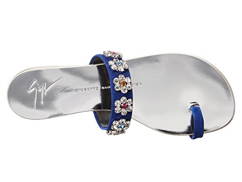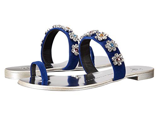 Binding : Apparel Product Description Keep your look on point throughout the seasons with Giuseppe Zanotti! Leather upper. Sandal silhouette. Slip-on design. Single toe strap silhouette. Single strap across the vamp decorated with silver-tone floral hardware accented with a colored crystal in the center. Leather lining. Lightly padded leather footbed. Low heel. Durable leather outsole. Made in Italy. This item may ship with an attached security tag. Merchandise returned without the original security tag attached or a damaged tag may not qualify for a refund. Measurements: Weight: 6 oz Product measurements were taken using size 37.5 (US Women's 7.5), width M. Please note that measurements may vary by size. 0